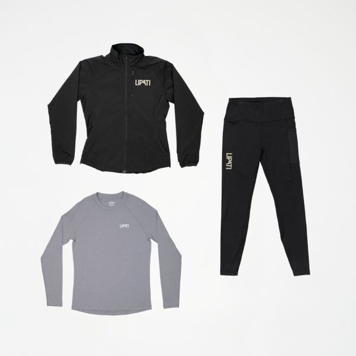 Lipati Winterized Set combines three carefully selected favorites that together provide you with a good starting point to welcome winter in your running shoes. The bundle consists of Hailstorm Jacket, Atmosphere Tights, and The Wool Long Sleeve – a complete set for runners who desire functionality, comfort, and a clean design, regardless of weather and intensity.